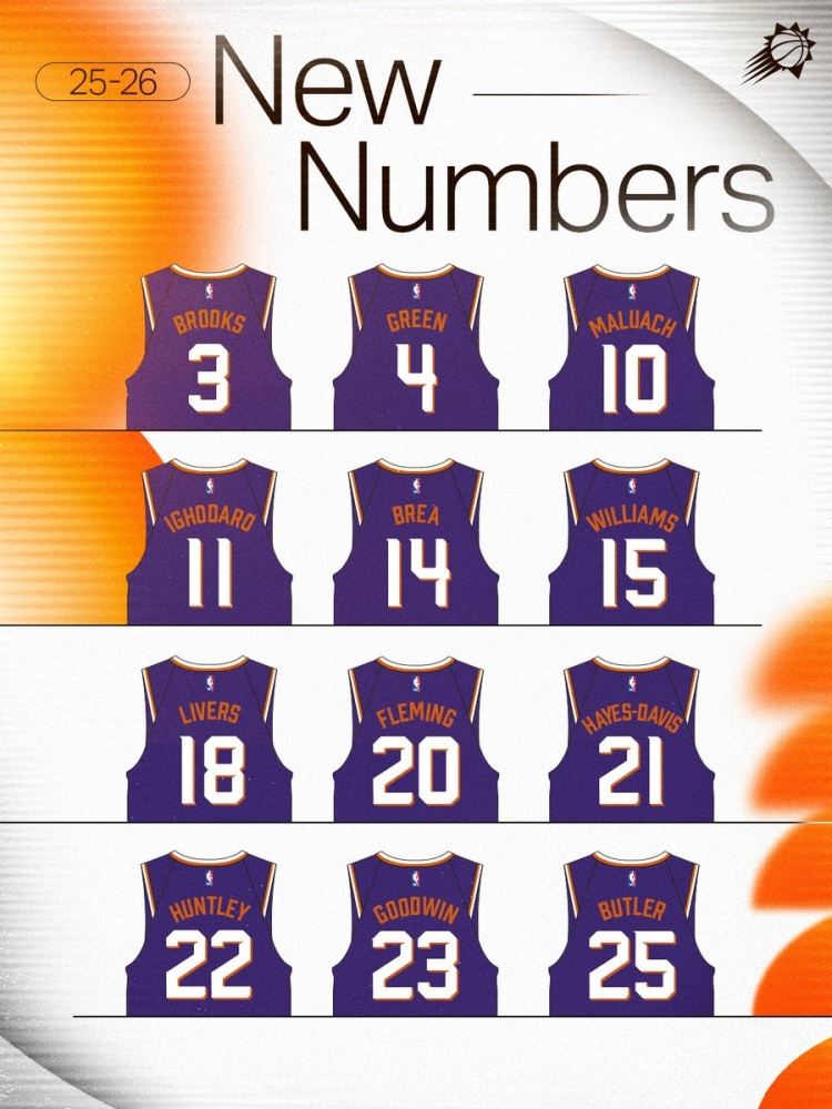 8月10日讯 今日太阳官方公布了队内一些球员的球衣号码。