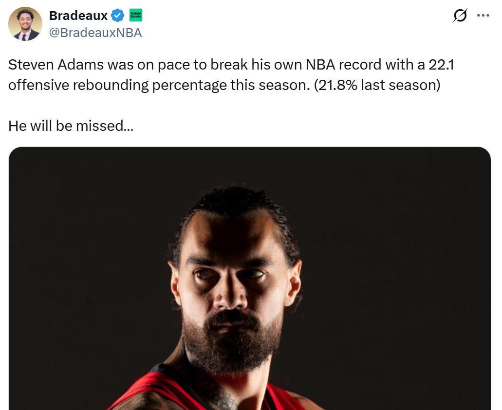对于火箭队来说,这无疑是个巨大的打击,因为亚当斯的前场篮板能力是火箭队“投抢模式”的核心支柱,本赛季当亚当斯在场时,火箭进攻篮板率高达45%,不在时下滑到38.6%。