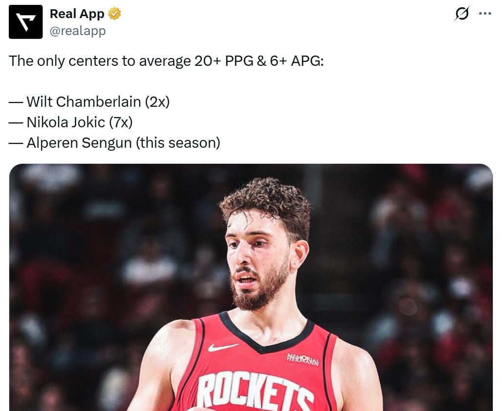 这也是申京本赛季表现的缩影,开赛至今,申京场均拿下21.5分9.3板6.4助,有希望继张伯伦与约基奇后,成为NBA历史上第三位单赛季场均至少20分6助的中锋。
